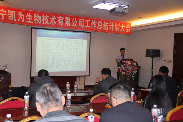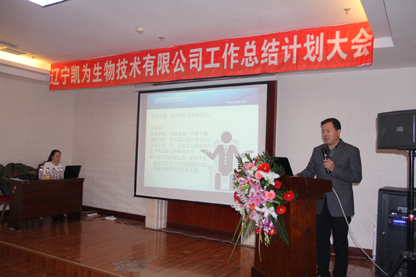 2017年1月6日下午,寒冷冬日,暖陽高照,美麗的渤海之濱錦州,遼寧凱為生物技術有限公司2016年工作總結和2017年工作計劃大會在華信大廈會議廳隆重舉行,遼寧凱為自2005年創(chuàng)建以來,歷時11年的發(fā)展歷程,我們積累了經(jīng)驗,也展示了多年的成果,展望2017年未來的發(fā)展重點和方向,現(xiàn)在,凱為人踏著夢想而來,滿載而歸。未來,凱為人堅定地為公司添磚加瓦、壘筑高臺,讓夢想更加豐滿,讓基業(yè)更加長青。整個會議歷時三個小時,包括總經(jīng)理王鐵良先生作年度工作總結、計劃報告,銷售部總經(jīng)理趙福寬先生作銷售部年度工作總結、計劃報告,優(yōu)秀員工表彰等環(huán)節(jié)。會議進行中,掌聲數(shù)次響起,整個會場始終洋溢著振奮、進取、熱烈的氣氛,精彩紛呈,亮點鮮明。